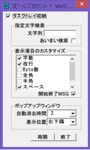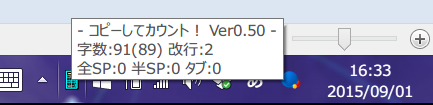あとからでも、タスクトレイのアイコンから最後にクリップした文字数が確認出来ます。